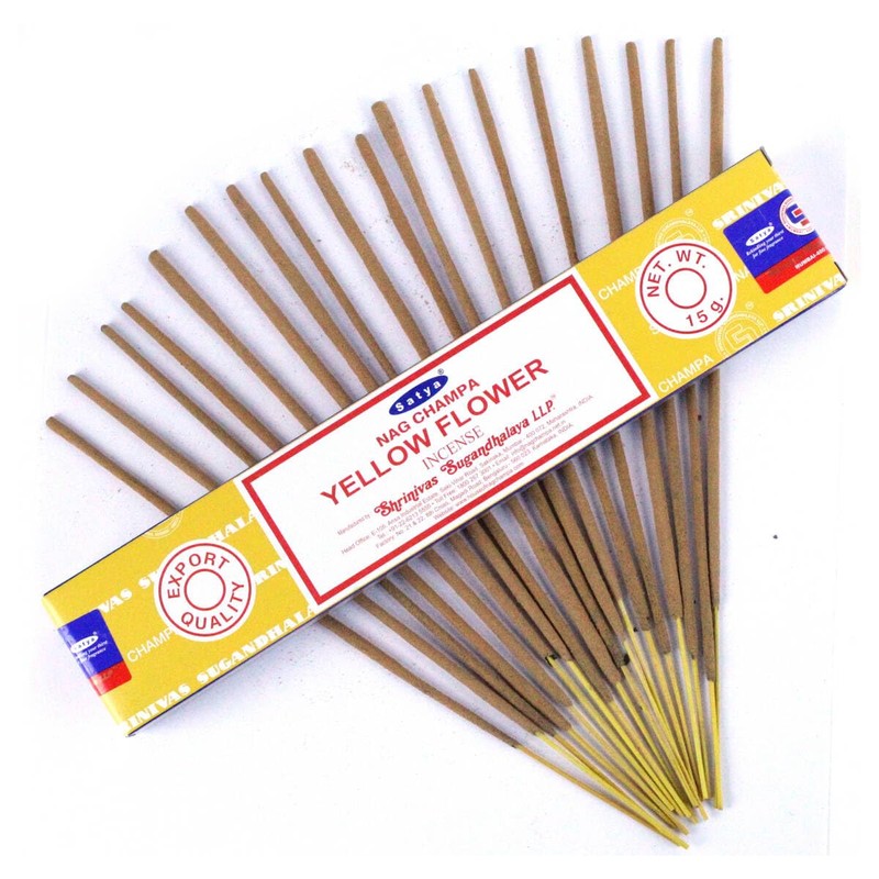 - Satya Nag Champa Yellow Flower incense Sticks completely handmade MADE FROM SCRATCH by blending natural resins, Herbs, Spices with aromatic wood powders, charred coconut powder fragrant oils and honey. No Dipping in Toxic Chemicals. 100% pure herbal ingredients without any chemical fragrance. You can free return for any reason.