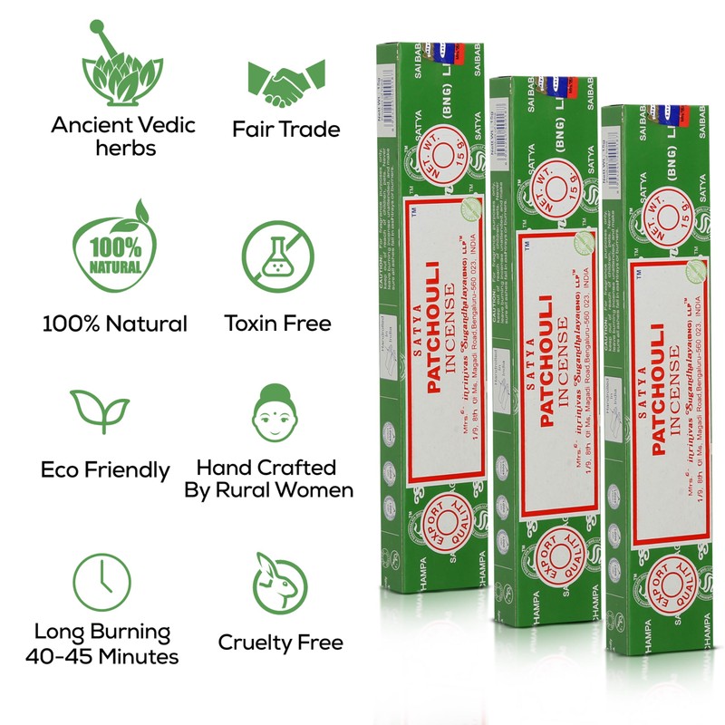 Satya Patchouli Incense Sticks, Satya Bng (Bangalore) Insenses 15gmx12 Pack with Raajsee Incense Holder Bundle, Satya Nagchampa Natural Incense