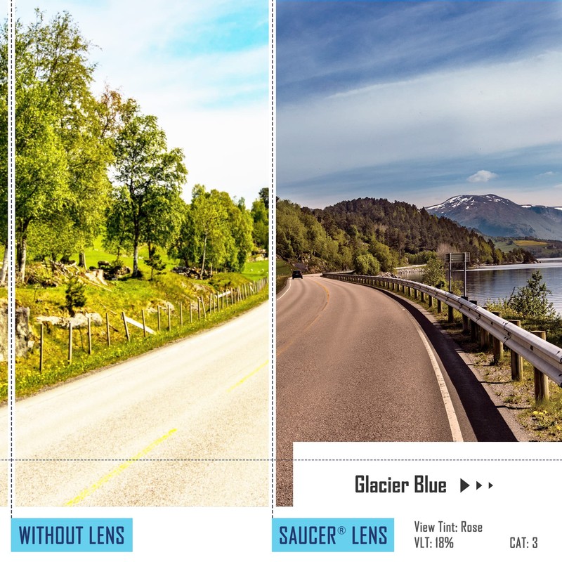 Saucer lenses help you see more by enhancing color, contrast and clarity, making colors more vibrant and the environment more defined.