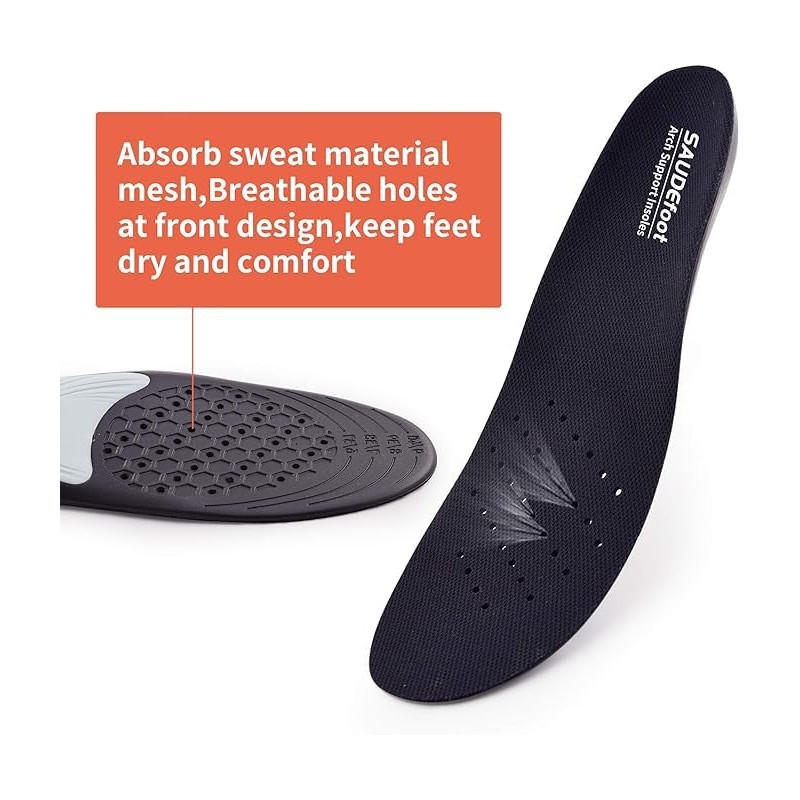 SAUDEfoot Arch Support Orthotics Insoles forMen and Women,Plantar Fascitis CushioningInsoles,Comfortable Soft Breathable for Walking and Sport, Pain Heel Relief (L(Men8-13))