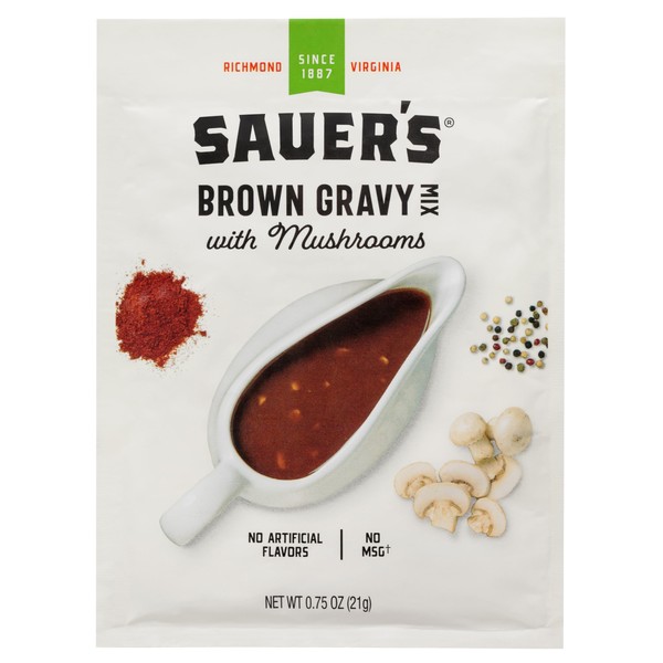 - 0.75 ounce packet of Sauer's Brown Gravy Mix with Mushrooms