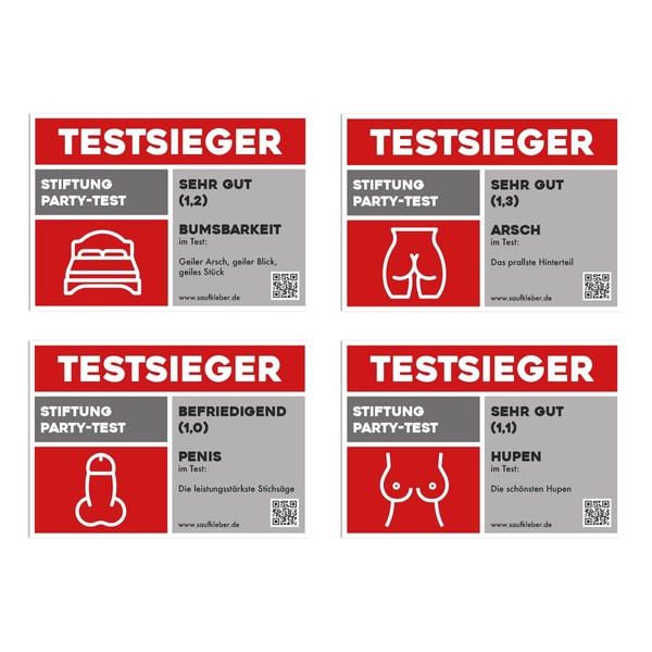 Saufkleber Test Winner Set - 80 Funny Party Stickers (7.4 x 10.5 cm) for JGA, Malle, Festivals & More - Vinyl, for Various Surfaces, Cartoon, Fox, Animal Print, Star, Heart, Leaf, Sea