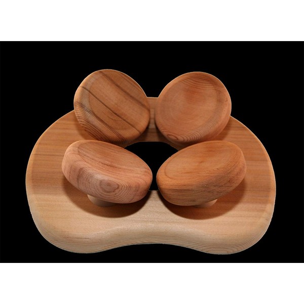 - Four sets of moving wooden discs for individual adaptation to the head shape.