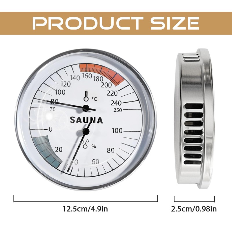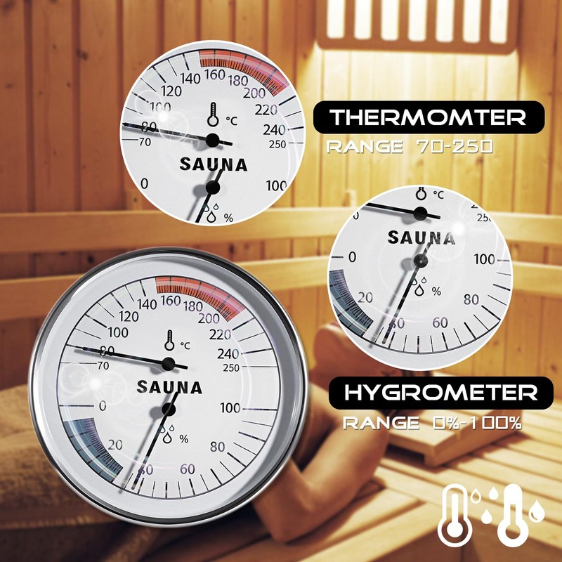- Real-Time Saunas Monitoring: Safeguard your sauna experience with the sauna thermometer. Equipped with sensitive sensors and convection holes,no batteries required, it offers real-time temperature and humidity monitoring for a safe and enjoyable sauna session