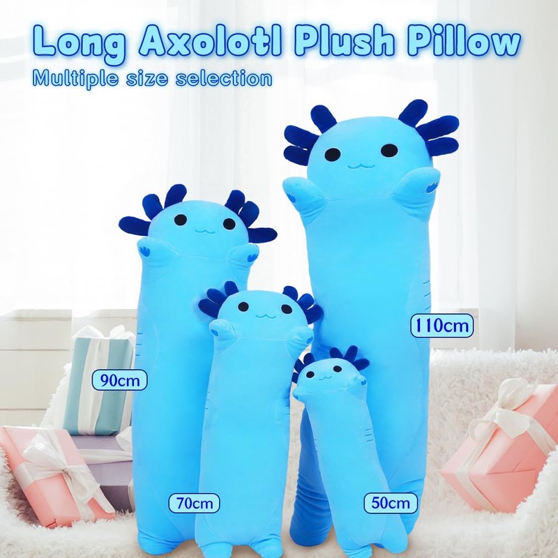 Sausudols Axolotl Plush Toys 43.3” Long Axolotl Plush Toys Stuffed Animals Axolotl Plush Toys Gifts for Family, Friends and Children Blue
