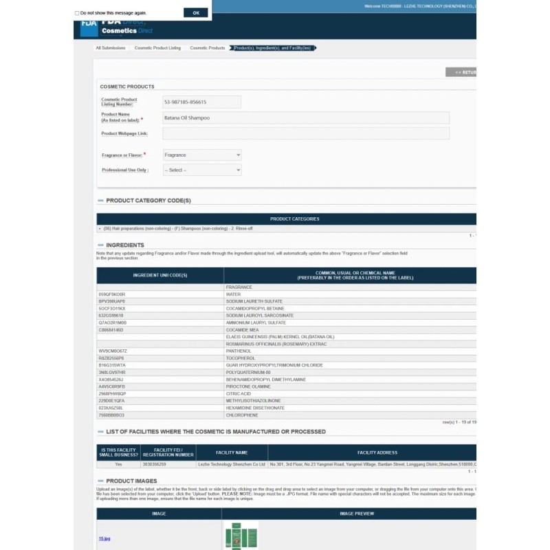 Ingredients: Aqua, Sodium Laureth Sulfate, Cocamidopropyl Betaine, Sodium Lauroyl Sarcosinate, Ammonium Lauryl Sulfate, Cocamide MEA, Elaeis Guineensis (palm) Kernel Oil (Batana Oil), Fragrance, Rosmarinus Officinalis (Rosemary) Extract, Panthenol, Tocopherol, Guar Hydroxypropyltrimonium Chloride, Polyquaternium-80, Behenamidopropyl Dimethylamine, Piroctone Olamine, Citric Acid, Methylisothiazolinone, Hexamidine Diisethionate, Chlorophene