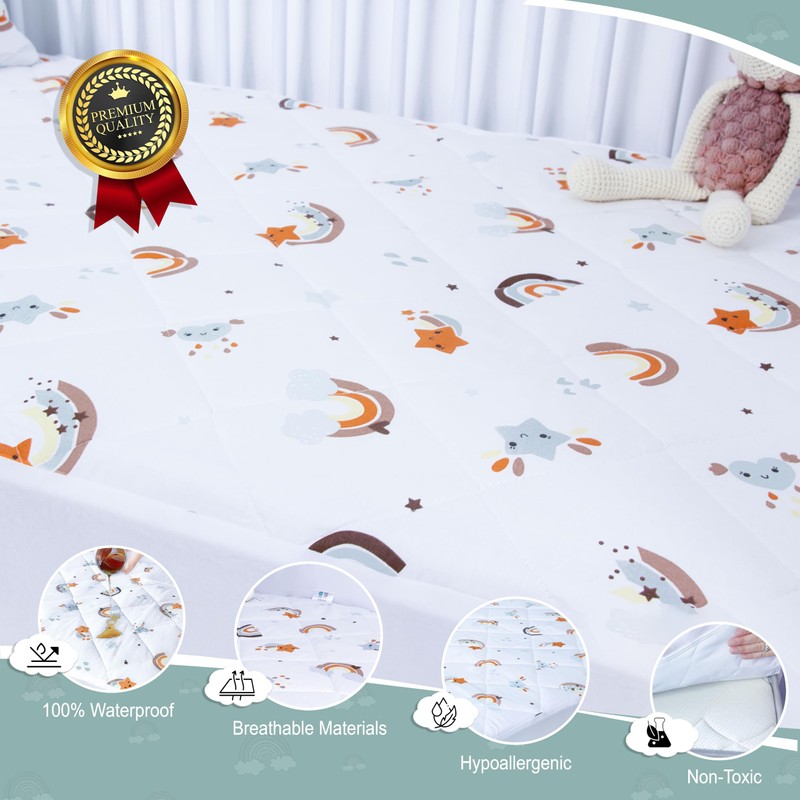Sava Kids Natural Cotton Crib Mattress Protector and Sheet, All in One, 100% Waterproof bedsheet, Breathable, Hypoallergenic, Potty Training, Ultra Soft, Noiseless Pad for Toddlers & Babies (White)