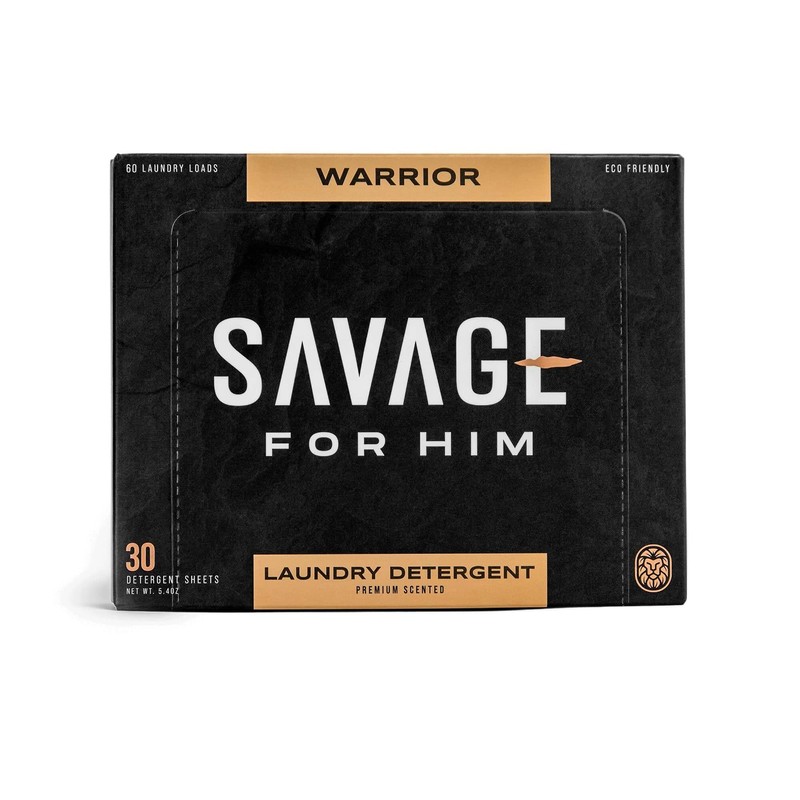 Savage for Him - Premium Scented Laundry Sheets - Warrior Scent - No Plastic Jug - Compact & Travel-Friendly - 30 Sheets (60 Loads)