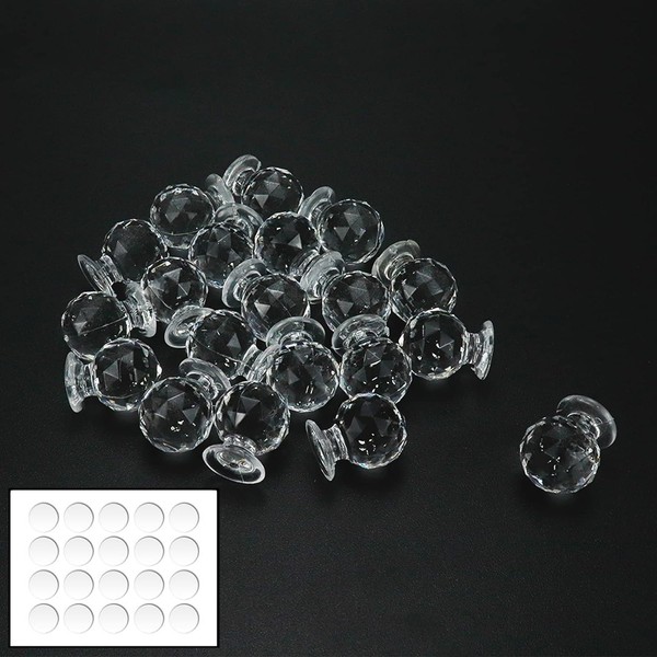 Savagrow 20pcs Self Stick Makeup Case Knobs Acrylic Clear Ball-Diamond Shape Drawer Knobs, 18x21MM with Double-Sides Adhesive