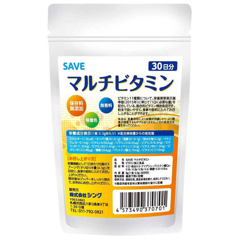 SAVE マルチビタミン パウダー 30日分 無香料・無着色・保存料無添加 国産