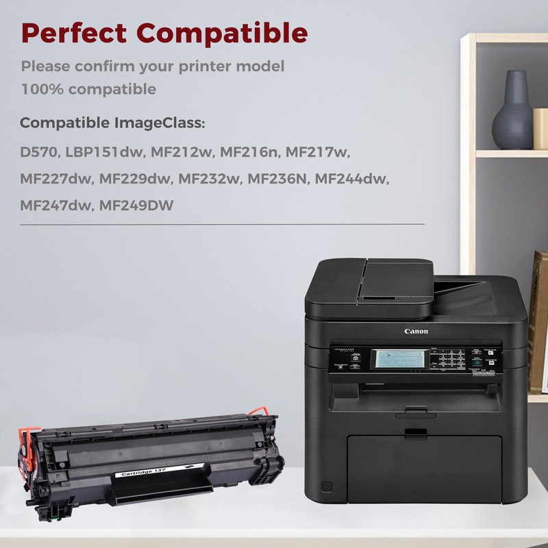 • Compatible Printers: The canon 137 toner is compatible for ImageClass D570, LBP151dw, MF212w, MF216n, MF217w, MF227dw, MF229dw, MF232w, MF236N, MF244dw, MF247dw, MF249DW
