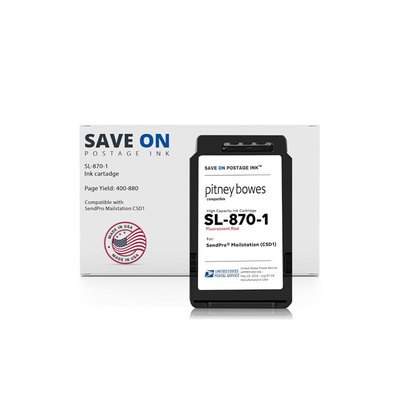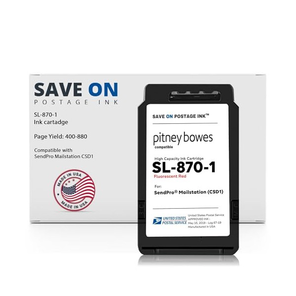 Compatible Pitney Bowes SL-870-1 Red Ink Cartridge Inkjet Printer Ink for SendPro Mailstation CSD1 Postage Meter Machine - PB Replacement Printer Cartridge w/OEM Compatibility