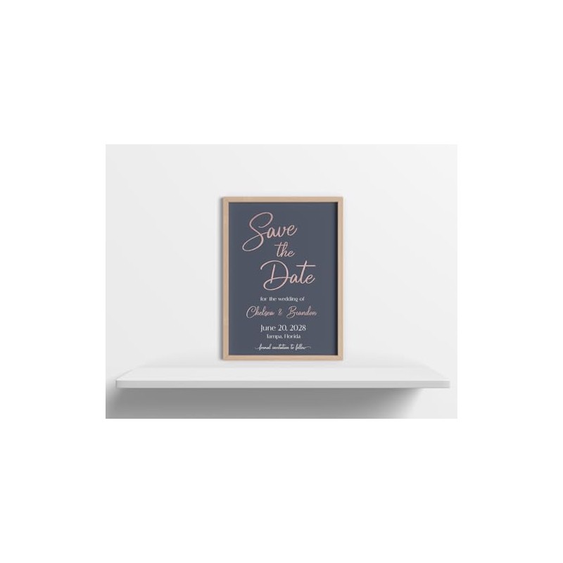 Save the Date Cards Customized and Printed with Names and Date of Event Wedding Reminder Invitations Simple Elegant Navy Blue Rose Gold Printed Cards (24 count)