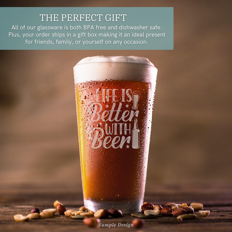The best gifts are both thoughtful and practical — making this standard 16oz pint glass a go-to for any occasion.