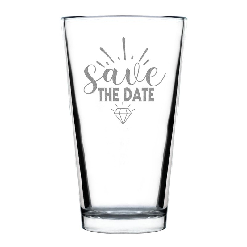 Save the Date Hand Engraved 16oz Pint Glass Etched Wedding Announcement Custom Keepsake