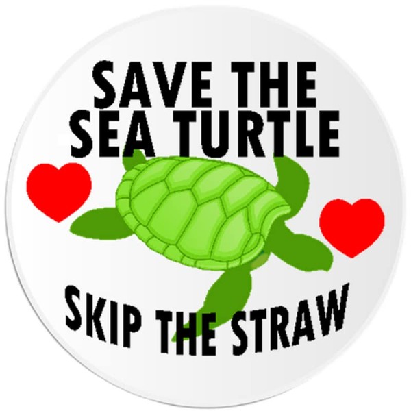 Save The Sea Turtle Skip The Straw - Circle Sticker Decal 3 Inch