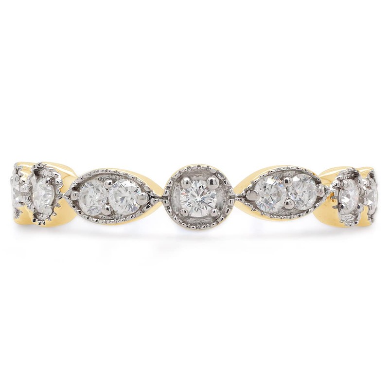 - This Half Eternity Stackable Band Ring For Women is made with 14K Yellow Gold Over Sterling Silver, allowing the beauty of the Synthetic Moissanite gemstone to truly shine. This Created Moissanite Diamond Band Ring Engagement Ring are an enchanting, effortless look she'll love
