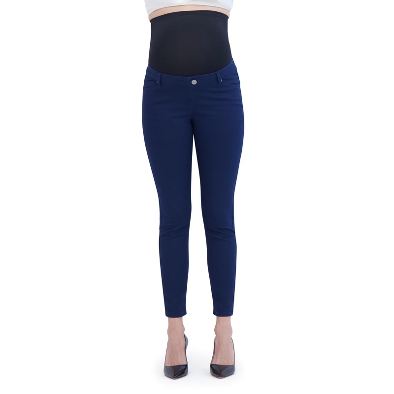 Savi Parker Maternity Work Pants for Women, Skinny Leg Over The Belly, Pregnancy Must Haves for Summer – 29" Inseam (L, Navy)