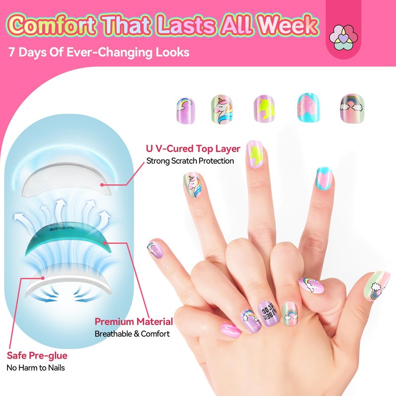 - Langlebig und Bequem: Unsere künstlichen nägel sind für den aktiven Lebensstil von Kindern konzipiert und sind langlebig, ohne zu klobig oder einschränkend zu wirken. Sie halten dem täglichen gebrauch problemlos stand und behalten ihren bezaubernden look – egal ob geburtstagsparty, kostümparty oder einfach nur ein tag voller fantasievollem spielen