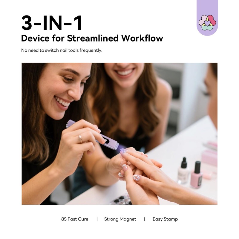 - 3 In 1 Nail Genius: SAVILAND Nail Lamp integrates a cat-eye magnet, nail stamp, and efficient curing function into one sleek device, revolutionizing your DIY manicures. Say goodbye to clutter and constant tool switching; your carefully created cat eye effect won't disperse before curing