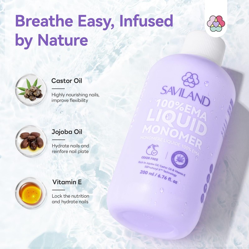 SAVILAND Advanced EMA Monomer Acrylic Nail Liquid Set: 200 ml Non Yellowing A...
