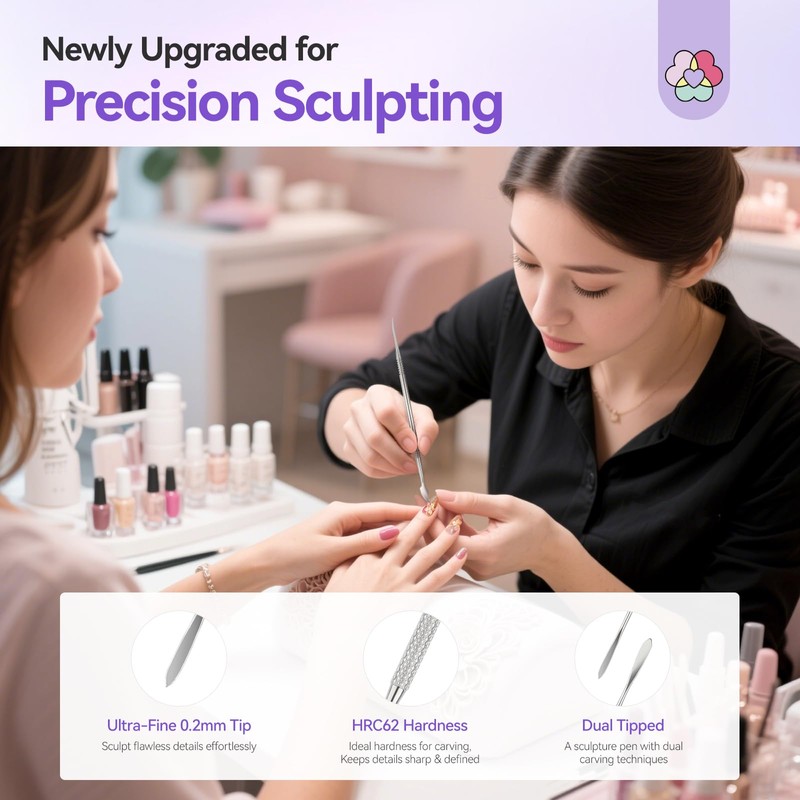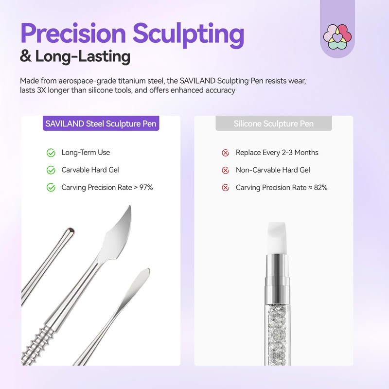 - Precision Sculpting, Even for Flower Stamens: The SAVILAND Nail Art Sculpture Pen comes with a 0.2mm ultra-fine hard tip. Unlike traditional silicone sculpting pens, its firm texture makes it perfect for nail art carving and gives you the control needed for intricate floral designs