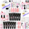 Saviland All-in-1 Poly Gel Nail Kit:6 PCS Nail Extension Kit with 220W U V Light Slip Solution Base & Top Gel Dual Forms U V Gloves for Home Salon
