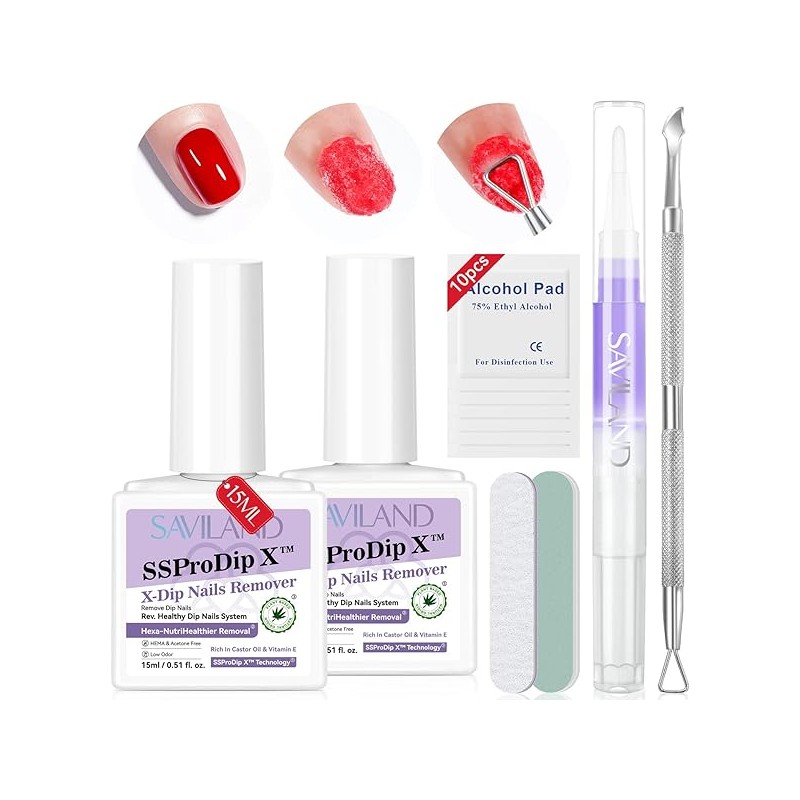 SAVILAND Dip Powder Remover 2 Pcs: Professional Dip Nail Remover Kit Gentle &...