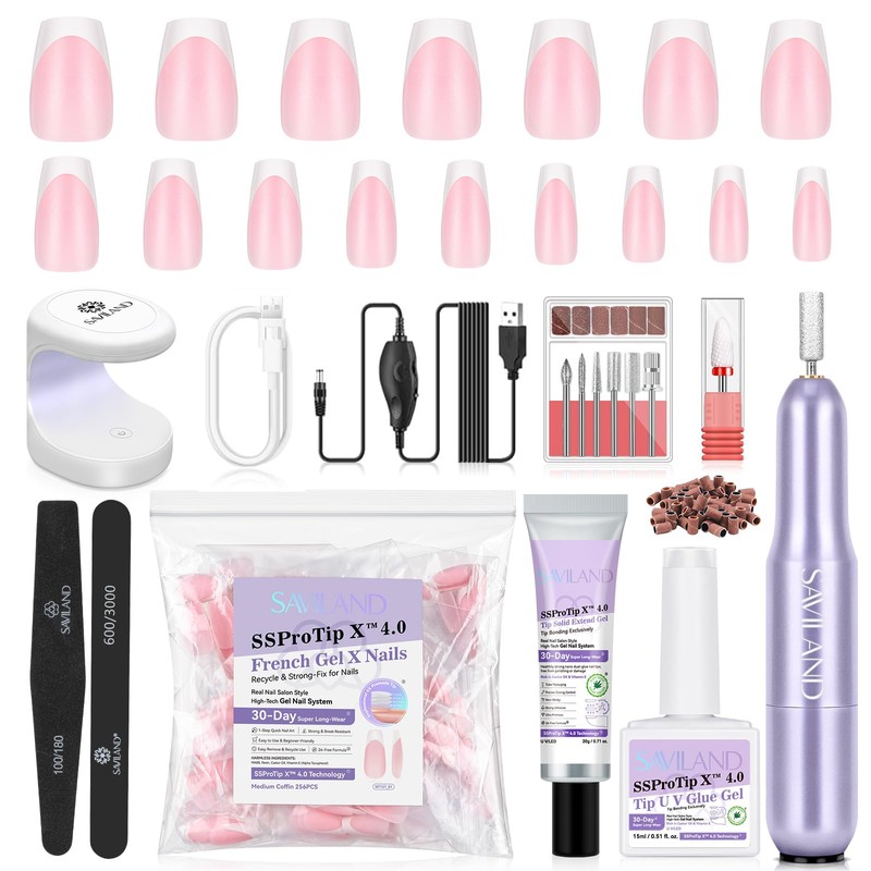 - 【PERFECT KIT FOR ALL YOUR NEEDS】Saviland Nail Tip and Solid Nail Glue Gel Kit includes 1 Mini U V/LED Nail Lamp, 30ml Solid Nail Glue Gel, 500 Pcs Nail Tips, Nail File, Nail Tip Clipper. You can also use it as nail extensions and enjoy the fun of DIY nail art
