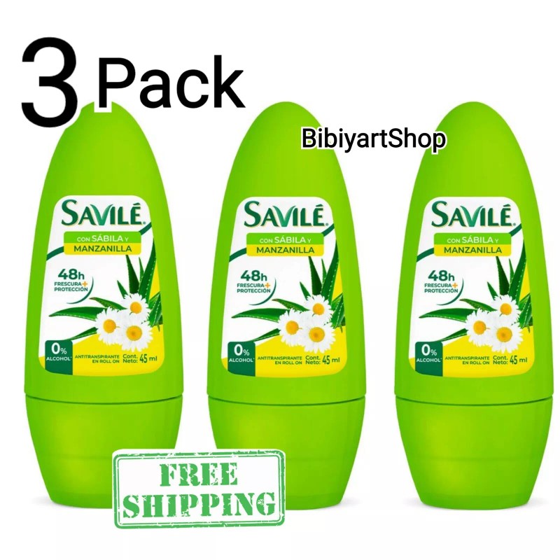 SAVILE 3 Pack Savile Desodorante Roll On Sabila Manzanilla Antiperspirant Aloe