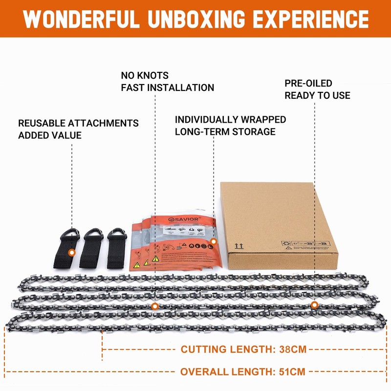 SAVIOR Pack of 3 Saw Chains 38 cm Replacement Chain 0.325 Inches 64 Drive Links 1.5 mm