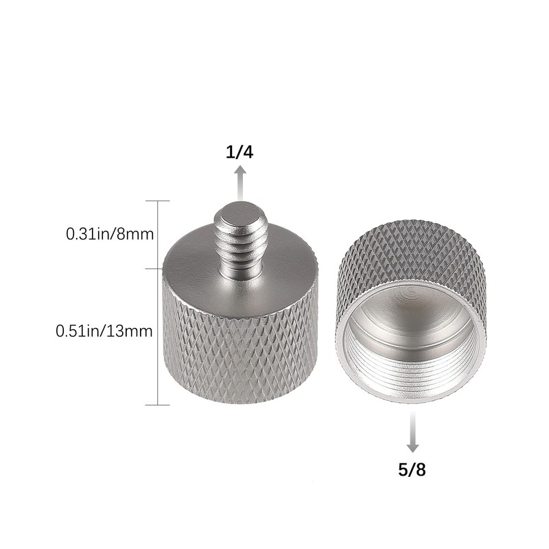 - Solid Material: Tripod screw adapter is made of solid aluminum alloy with smooth finish and metallic luster. The surface of this screw adapter is beautifully engraved with knurling for installing and removing easily.
