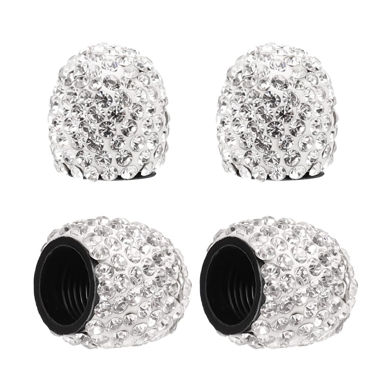 SAVITA 4pcs Ventilschaftkappen Strass Reifen Ventilkappen, Bling Luftdichte Dichtung für Autos SUV Trucks Motorräder (Weiß)