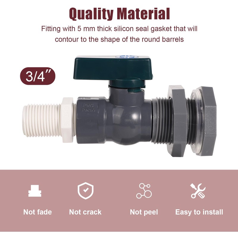 - Package Includes: Our package contains a PVC ball valve, a PVC partition accessory and a PVC hose adapter, all size 3/4inch/1.9cm, which are great tool for rain barrels.