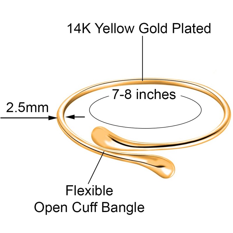 - Savlano 14K Gold Plated Double Teardrop Open Cuff Bangle will fit any style. This Trendy Teardrop Bangle is meant to endure daily wear and it is very comfortable and lightweight. Wear alone with casual or formal attire to complete your modern and elegant look. This Gorgeous Teardrop Open Cuff Bangle has a nice reflective finish and a rich, dainty shine. It is a Perfect addition to your everyday look.