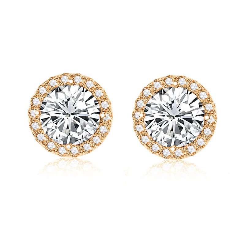 Savlano 925 Sterling Silver Cubic Zirconia Round Stud Earrings - 18K Gold Plated Earrings For Women - Made in Italy Comes With Savlano Gift Box