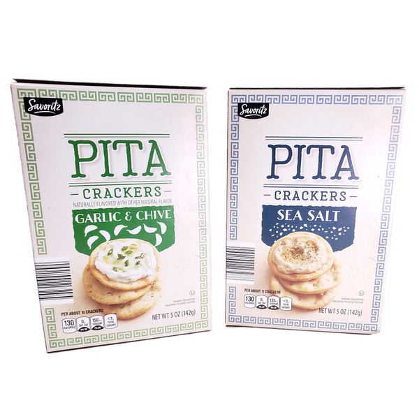 Savoritz PITA Crackers Sea Salt and Garlic & Chive 5oz 142g (Two Boxes)