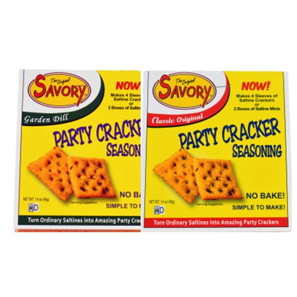 Savory Saltine 2-Pack -- 1 Garden Dill, 1 Classic Original plus 2 Large Double Sealed Zip Top Bags