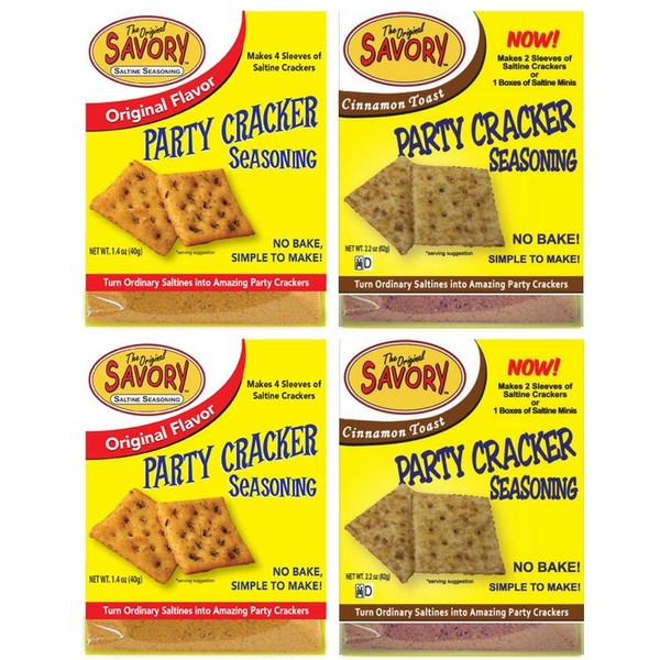 Savory Saltine Seasoning, 1.4 Ounce, Savory & Sweet Sampler Set, 2 Flavors, 4 Pack