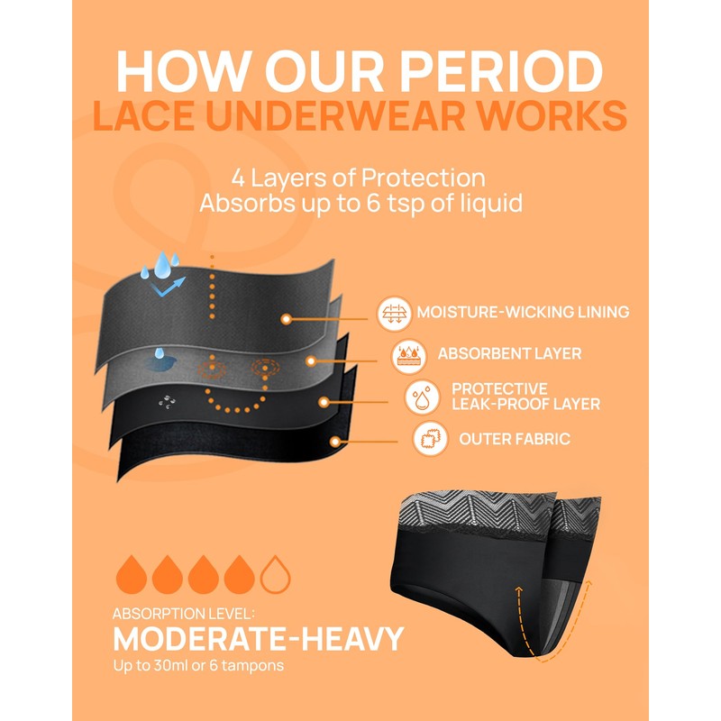 Savvi Wear Mid-High Waist Period Lace Bikini Brief, Leopard - Sundial, 3X-Large