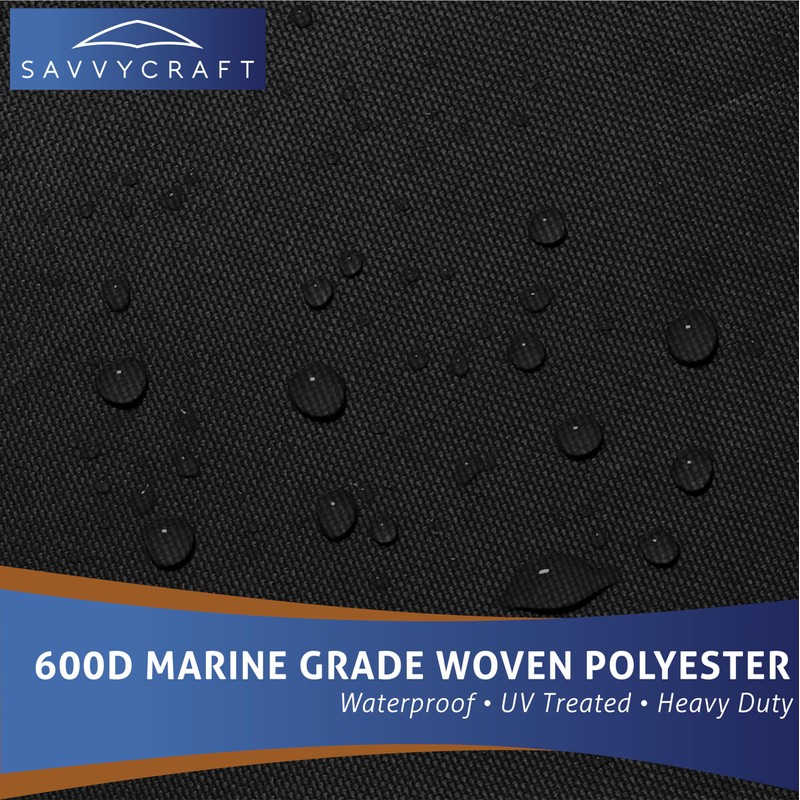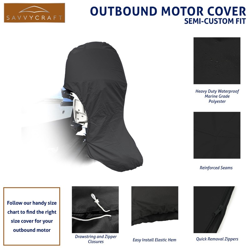 SavvyCraft Heavy Duty Outboard Motor Cover, Waterproof 600D Polyester Full Size Boat Engine Cover for Motor up to 175-225 HP Black Color