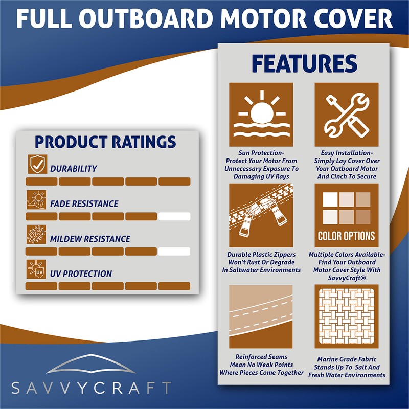 - DURABLE FULL OUTBOARD ENGINE COVER: Prevent fading and creaking on motor from exposure to SUN, RAIN, WIND, etc