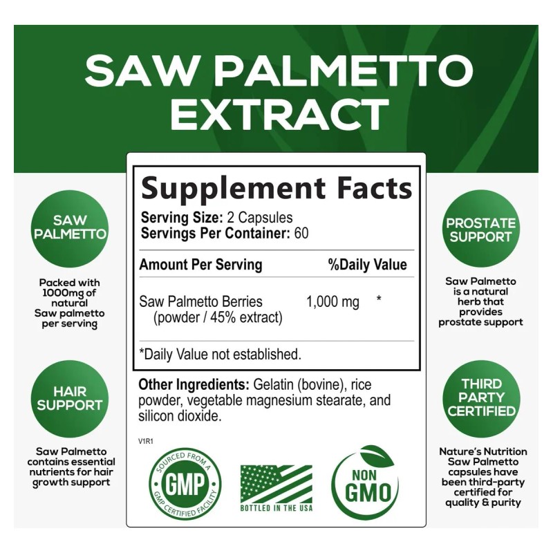 Apoyo premium para la salud de la próstata: repleto de 1000 mg de extracto de palma enana americana, nuestro suplemento de próstata Saw Palmetto apoya la salud de la próstata y el apoyo frecuente para la micción con palma enana americana para hombres de 1000 mg