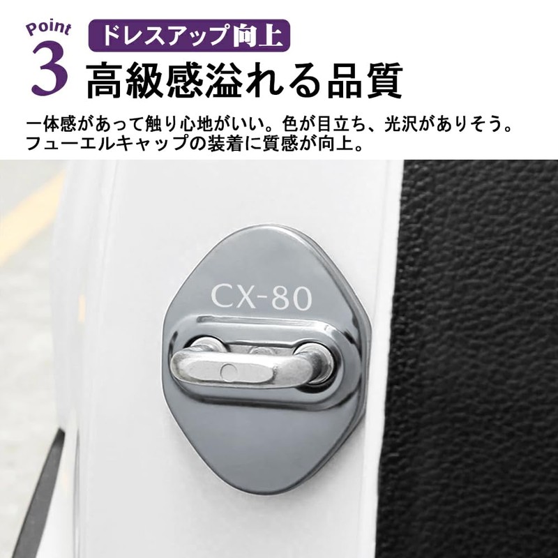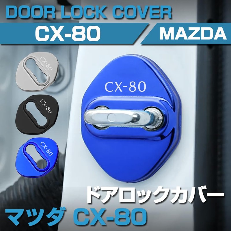 SAWAKAKI For Mazda CX-80 Door Striker Cover Door Lock Cover with Logo Rust Resistant Metal Custom Parts Set of 4 (Silver)