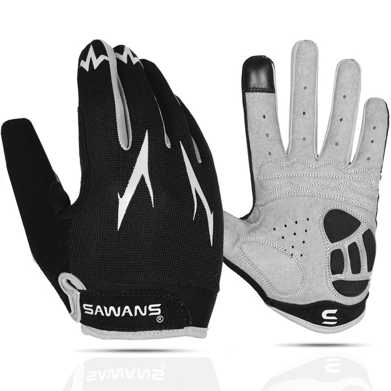 SAWANS Cycling Gloves Full Finger Mountain Bike Gloves Padded Breathable Touchscreen MTB Road Biking Gloves for Men Women Camping,Cycling,Running (Black, L)