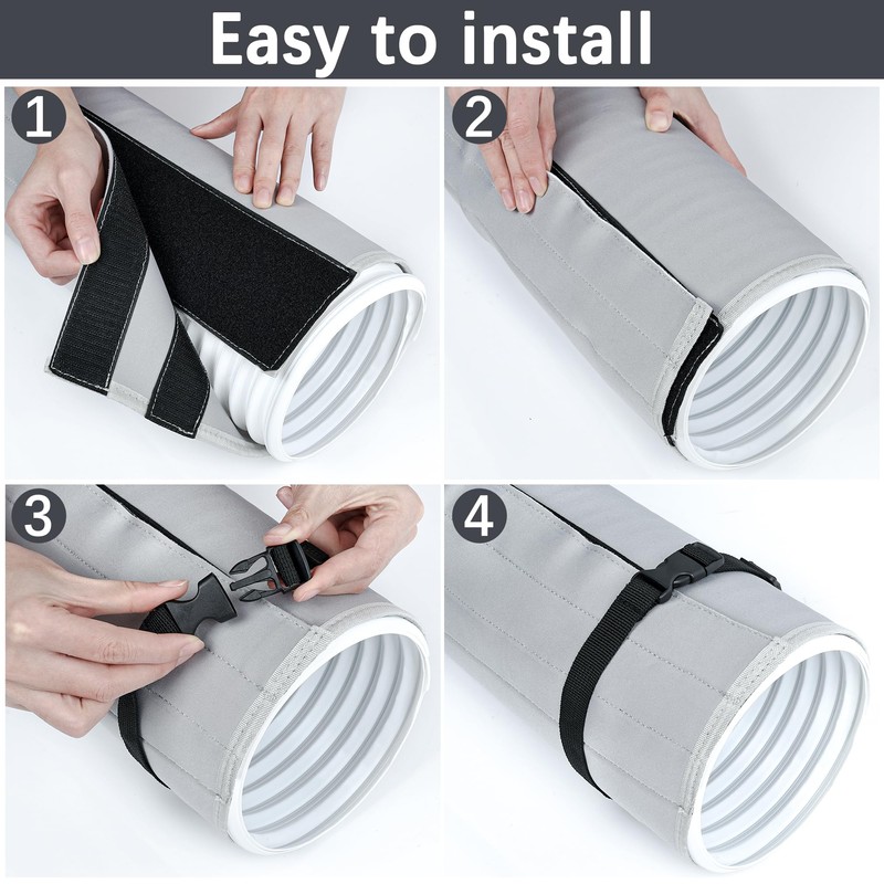 - The 60" x 21" portable AC hose sleeve fits 5" and 5.9" ducts, shielding from sun damage to prolong duct life.