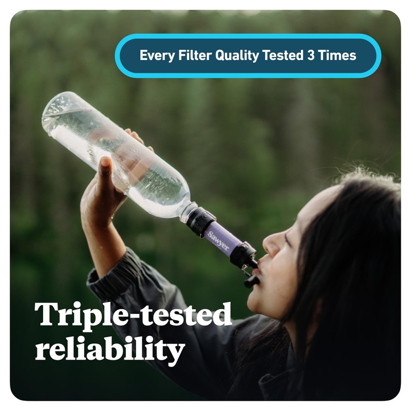 The Sawyer Mini Water Filter is a second generation filter that is the lightest and most versatile personal filtration system from Sawyer. With a total field weight of 2 ounces it fits in the palm of your hand. This tiny filter does the same job that the Sawyer PointOne filter does but now in a more compact, personal size. The Sawyer Mini filter is perfect for everything from camping with the kids to traveling abroad where tap and bottle water cannot be trusted.