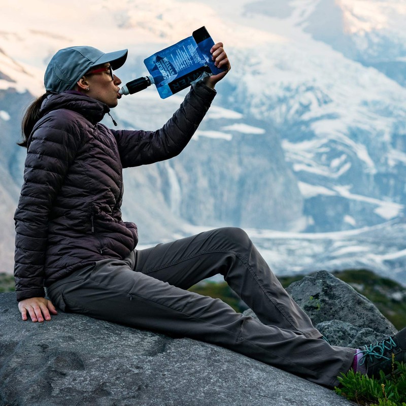 ★ This is a new product that is used in the SP131 and SP129 squeeze filter capabilities have been reduced as it is. ★ [Feature 1] The Sawer's filter has a U-shaped "hollow fiber membrane" that filters water with countless 0.1 micron holes. This allows you to create a high performance, small and light filter. This filter cannot remove dissolved solids and viruses such as calcium, magnesium, and heavy metals that are dissolved in water. [Feature 2] You can set it into the included pouch, a standard water bottle or hydration bottle. Unlike the type of filters built into the bottle, you can use the pouch or plastic bottle to store and carry clean water in your water bottle or container. [Feature 3] After use, use the included cleaning syringe (no needles) with clean water in the opposite direction to remove impurities and clean the filter. It also comes with a cleaning cup that can be used to connect a water bottle or pouch to the spout and flush the water filter from the reverse direction, allowing you to clean the filter even without a cleaning syringe. Since it is a pouch instead of a bottle, it can be rolled up for storage and takes up much space. The manufacturer warranty is only valid when purchased from an authorized importer or an authorized dealer. (Please note that parallel import products are not covered by the warranty. )