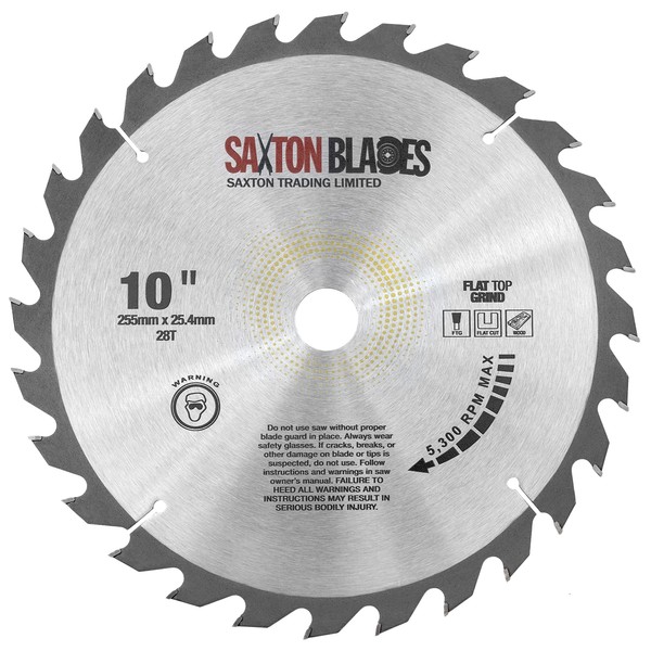 Saxton Flat Top TCT Circular Saw Blade 255mm x 28T x 25.4mm Bore fits Evolution