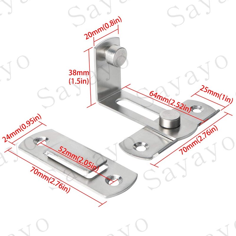 Sayayo 90 Degree Door Lock Slide Gate Latch Tiny Door Bolt, Stainless Steel Brushed Finished, EMS9001K-FBA